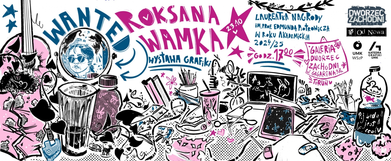 Zapraszamy na wystawę indywidualną Roksany Wamki - tegorocznej laureatki nagrody dydaktycznej Katedry Grafiki imienia prof. Edmunda Piotrowicza. Wernisaż wystawy odbędzie się 23.10.2025 roku o godzinie 17:00 w Galeria Dworzec Zachodni w OD NOWA.