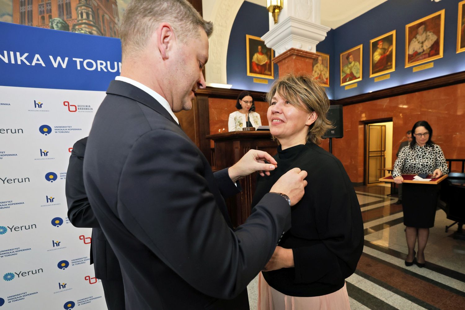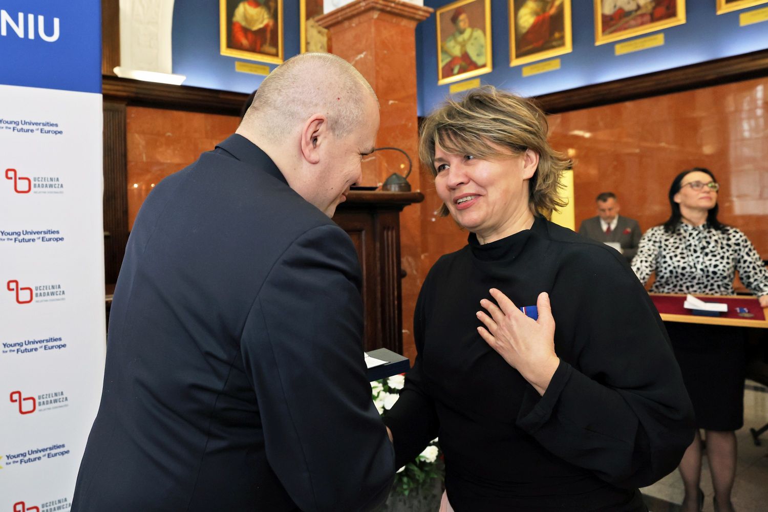 Odznaczenia – wspólnie z prorektorem ds. kadrowych i polityki finansowej dr. hab. Radosławem Sojakiem – wręczyli wicewojewoda kujawsko-pomorski Michał Koniuch i kujawsko-pomorska wicekurator oświaty Beata Sikorska.