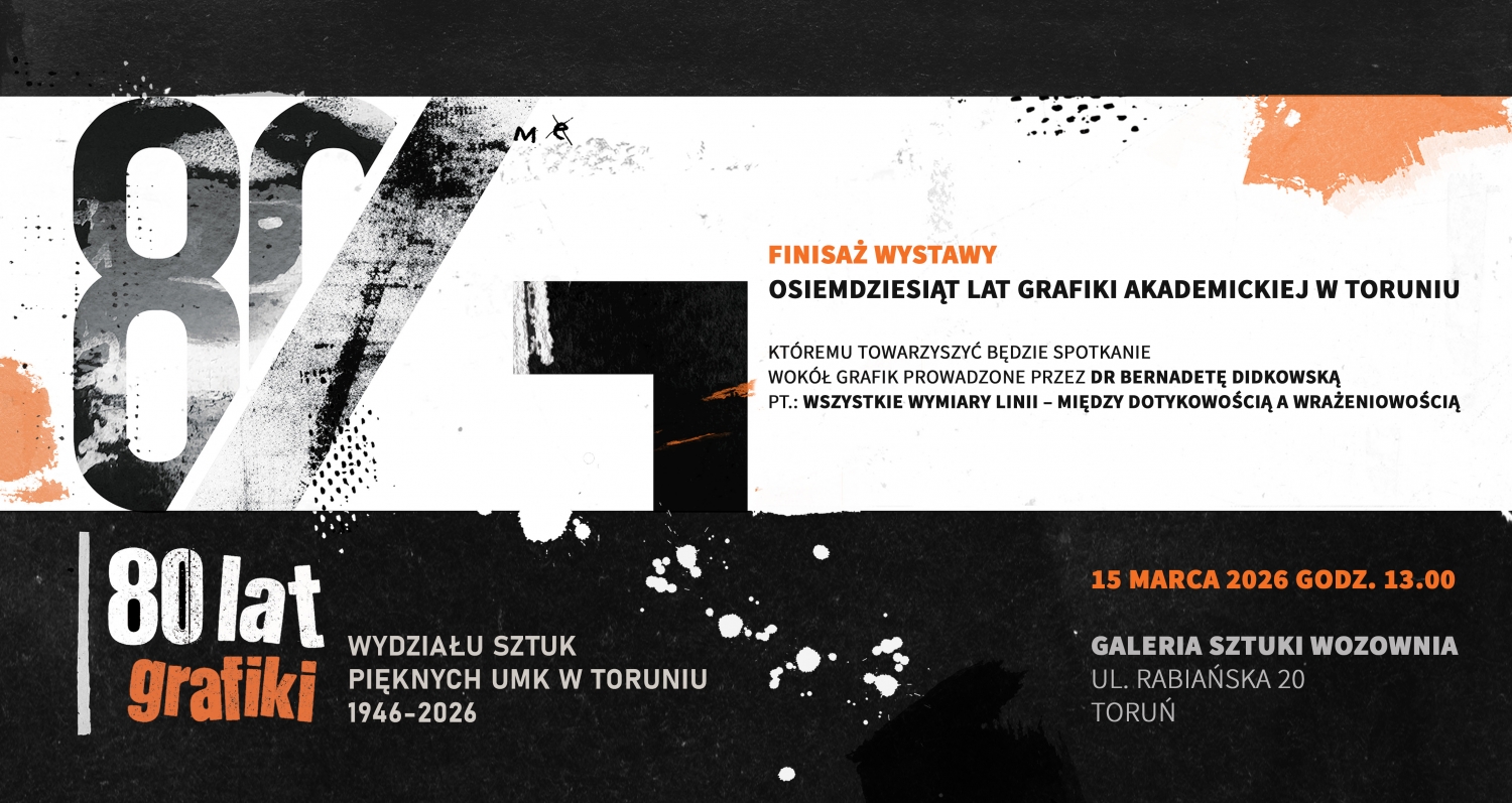 Serdecznie zapraszamy do Galerii Sztuki Wozownia na finisaż wystawy „Osiemdziesiąt lat grafiki akademickiej w Toruniu", któremu towarzyszyć będzie spotkanie wokół grafik prowadzone przez dr Bernadetę Didkowską z Katedry Edukacji Wizualnej i Badań nad Sztuką WSzP UMK. Spotkanie odbędzie się 15.03.2026 roku o godzinie 13:00.
